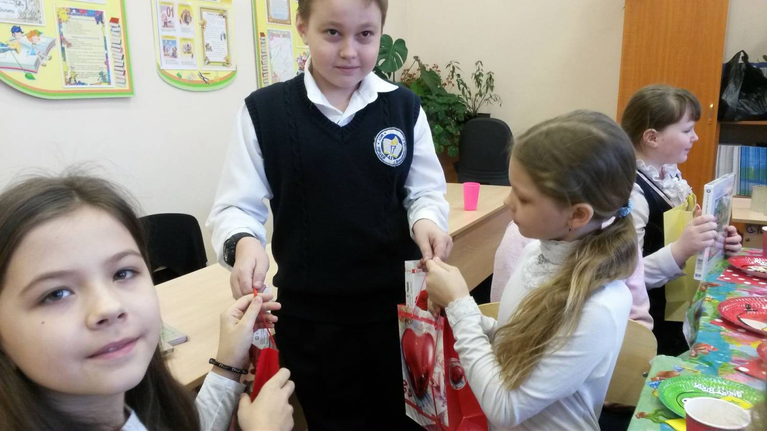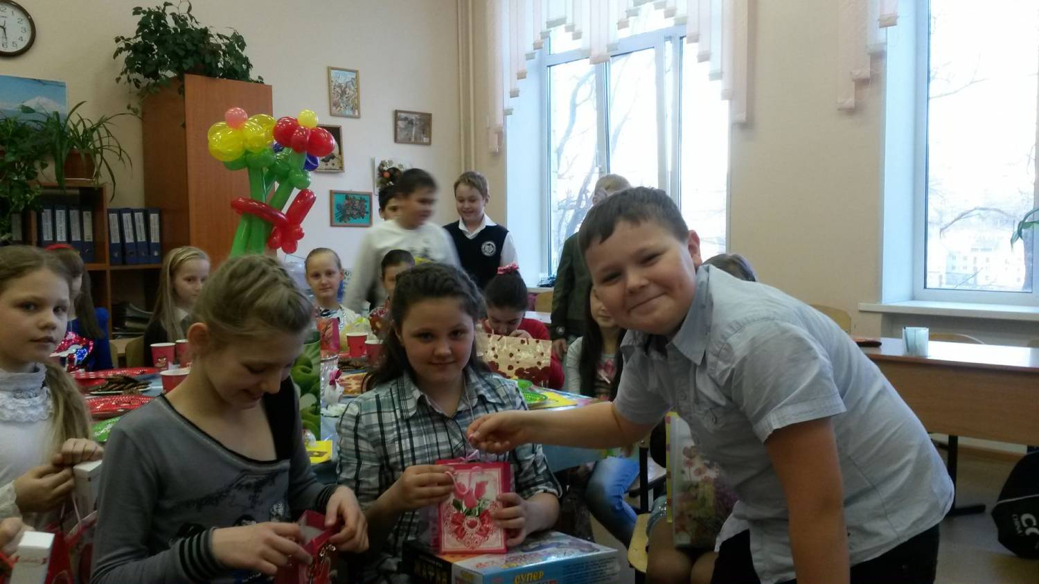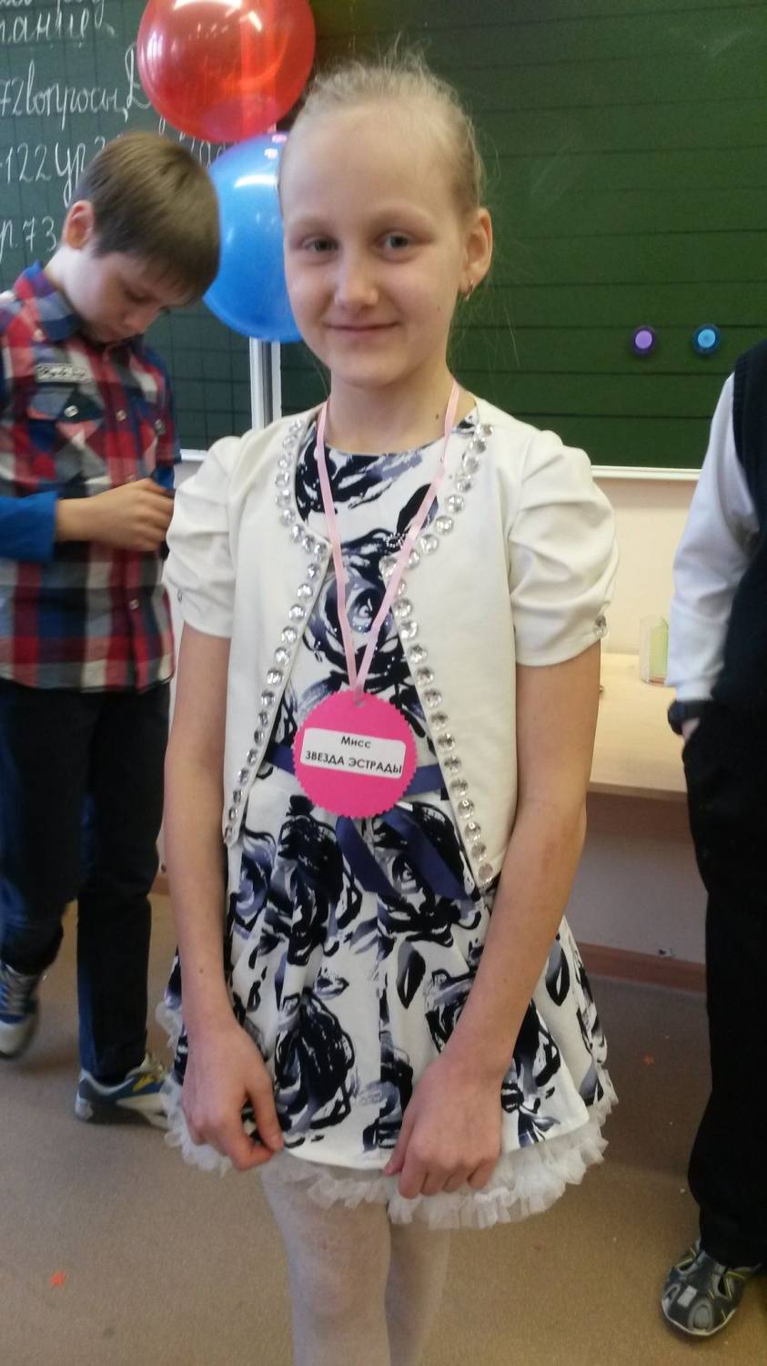 8 Марта – самый удивительный, самый нежный праздник весны. Каждый год мальчики нашего класса поздравляют наших девочек и нашу любимую Надежду Ивановну с Международным женским днем. В этом году мальчики превратили этот день в настоящий праздник.Они заранее украсили класс к празднику, накрыли стол к чаепитию, подготовили подарки и придумали разные конкурсы. В итоге конкурсов все девочки нашего класса были награждены медалями. Первая номинация : «Мисс Популярность». (Всем мальчикам раздают листы бумаги, на которых они пишут, какая девочка самая внимательная, отзывчивая, общительная. Выявляется самая популярная девочка, ей вручается медаль «Мисс Популярность».) Следующая номинация: «Мисс Золушка». (Выходят девочки. Их ступню обводят на листе бумаги и выбирают, чья ножка самая маленькая. Ей вручают медаль «Мисс Золушка».) Следующая номинация: «Мисс Русалочка». (Мальчики выбирают девочку, у которой самые длинные волосы, и вручают ей медаль «Мисс Русалочка».) Следующая номинация: «Мисс Длинные ресницы». (Среди девочек мальчики выбирают ту, у которой самые длинные ресницы.) Следующая номинация: «Мисс Грация». (Желающие девочки выходят и танцуют под музыку. Мальчики выбирают самую грациозную и вручают ей медаль.) Следующая номинация: «Мисс Уверенность». (Глядя на себя в зеркало, серьезно, без улыбки, девочки должны себя хвалить: «Ах, какая я красивая, смелая, умная, талантливая...» Самой уверенной вручается медаль.) Следующая номинация: «Мисс Сообразительность». (Желающим девочкам раздают листы с заданием составить как можно больше слов из заданных букв: косилка. Кто составит больше слов, получает медаль.) Следующая номинация: «Мисс Забота». (Девочки должны перевязать руку (ногу) мальчику. Кто это сделает аккуратно и быстро, получает медаль.) Следующая номинация: «Мисс Модель». (Кто из девочек красиво пройдет по классу, не уронив книгу, которая лежит на голове, получает эту медаль.) Следующая номинация: «Мисс Хозяюшка». (Та девочка, которая лучше и быстрее почистит картошку, получает медаль «Хозяюшка».) Следующая номинация: «Мисс Тактичность». (Кто из девочек вежливее расскажет мальчикам об их недостатках, получает медаль.) Следующая номинация: «Мисс Решительность». (Девочка, которая решится пригласить мальчика на белый танец, получает медаль.) Следующая номинация: «Мисс Звезда эстрады». (Кто из девочек лучше исполнит песню (можно под караоке), награждается этой медалью.) Следующая номинация: «Мисс Обаяние». (Самой обаятельной в конкурсах девочке мальчики вручают эту медаль.) Следующая номинация: «Мисс Зрительских симпатий». (Зрители аплодисментами выбирают девочку, которая им понравилась больше всех, и вручают ей медаль.)